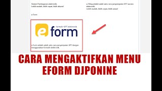 Ketika rekan masuk ke website djponline dan menu eform tidak ada atau tidak muncul dan atau ketika rekan mengaktifkan pertama kali akan muncul pesan ...