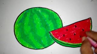 cara mudah menggambar dan mewarnai semangka untuk anak menggunakan pastel (How to draw and coloring a watermelon with a simple way for children) ...